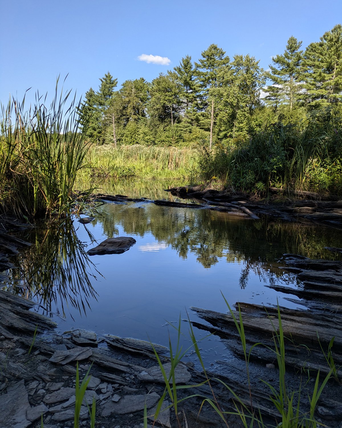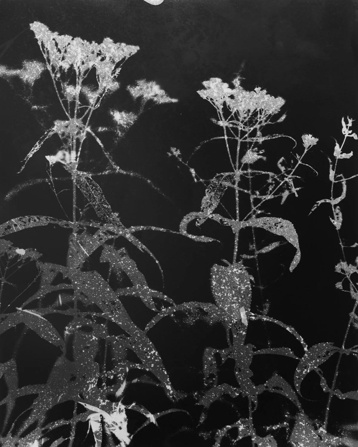 This body of work began as an attempt to push myself out of my comfort zone and capture a familiar landscape in a new perspective, but it unexpectedly became as much an exploration of self as of the environment. I created these photograms in the middle of the night, a half mile into the woods, up to my knees in the inky-black waters of the marsh on my property in Upstate, NY. As I navigated the wetlands with my arms full of photo paper and lighting equipment, my fear of the dark dissolved and I became attuned to the vibrancy of the dark space. Frogs called out, crayfish scattered, leeches and fish drifted past, and barred owls made themselves known as the wildflowers and cattails swayed with my movements. The connection between water and land in this ecosystem is palpable when you’re so fully immersed in it. With senses heightened in the dark, I discovered a world I hadn’t known to look for: full of the complex nuances of this ecosystem, carved by the constant flux of water, and the intricately layered biodiversity inhabiting it. By positioning the Marsh as an active collaborator in image-making, I created overlapping double exposures to describe the otherwise invisible relationship between the underwater and terrestrial worlds: their physiological bonds, symbiotic relationships, and natural rhythms. As I worked, the water in the Marsh revealed itself not merely as a subject of ecological significance for all of the life within, but as a mirror to humanity. I recognized myself (all of us, really) in the shallow depths of the marsh, reflecting on my own inner and outer worlds and how our psyche manifests in our surroundings.